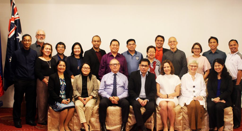 Members of the NEAP Transformation Task Force led by Usec. Nepomuceno Malaluan (seated, 4th from the left) with Australian Embassy First Secretary Francesca Lawe-Davies (seated, 3rd to the right) and RCTQ Director Dr. Gina Gonong (seated, first on the right).
