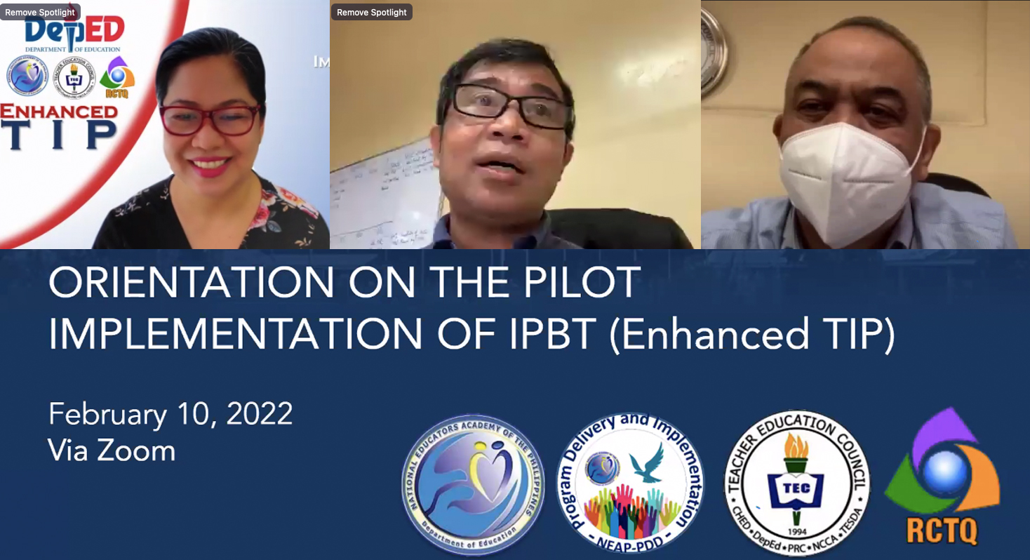 RCTQ assisted the National Educators Academy of the Philippines (NEAP) and the Teacher Education Council (TEC) in holding a virtual orientation on 10 February 2022 for DepEd leaders in the regions who will be involved in the pilot implementation of the enhanced Teacher Induction Program (TIP).
