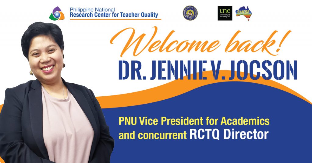 Following the appointment of Dr. Gina Gonong as DepEd undersecretary, RCTQ welcomes back former deputy director Dr. Jennie Jocson who has assumed the top RCTQ job in a concurrent capacity as the Philippine Normal University (PNU) Vice President for Academics.